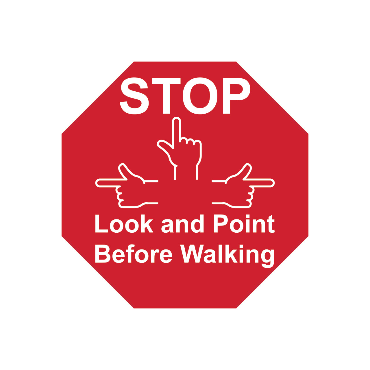 Improve on-site visual communication with this Stop, Look, Point floor sign.