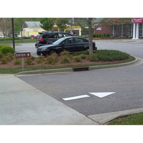 This parking lot straight arrow adheres easily to asphalt and concrete pavement in parking lots and garages, without any special painting machines, parking lot arrow stencils, or painting equipment.