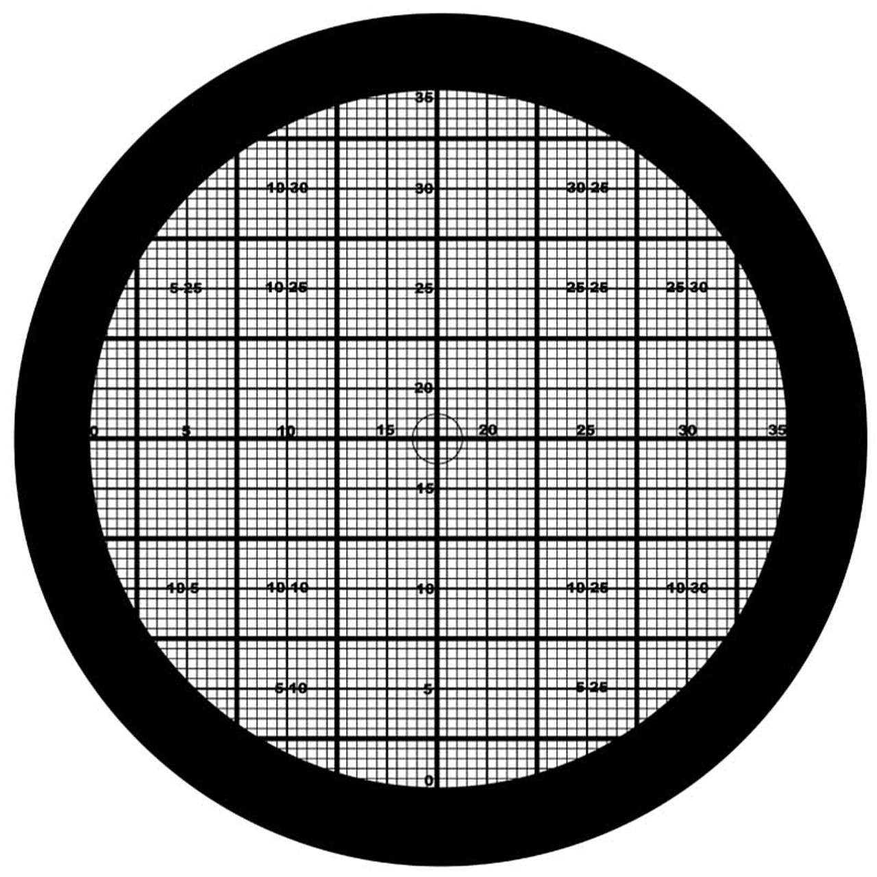 The Measuring Grid is a glass or a metal plate made with a cut-out pattern featuring a grid of evenly spaced lines. The measuring grid is used in setting up lighting to visually assess and correctly position the virtual sign. It holds importance while correcting for distortion or the "keystone effect" due to angling the light source. Basically, the measuring grid is like a virtual reference to ensure a projected image is easily visible, straight, and properly aligned on the surface. The black or white surface cuts down reflections inside the fixture and increases the sharpness and clarity of your image, showcasing less 'glare' around your projected image.