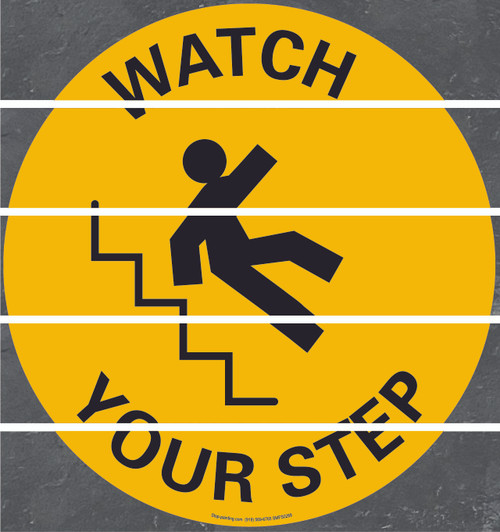This easily noticeable yellow sign with black text can be read quickly to help your employees stay alert. Choose from Superior Mark, vinyl, rubber, or inlaid mesh depending on the surface you need it for. Ensure employees are watching their steps and looking out for hazards with our watch your step floor sign.
