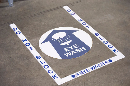 Make your work facility safer and more efficient by using Lean and 5S visual cues. Eye wash stations are critical equipment in factories and industrial warehouses that use potentially dangerous chemicals or that have flying dust and other debris. To keep workers safe and comply with OSHA safety regulations, we have our Eye Wash Station floor tape marking sign and border kit. The rubber or vinyl floor sign and 3-piece printed border clearly mark the location of the eye wash station and it also keeps the area unobstructed so that people can access it quickly in the event of an emergency.