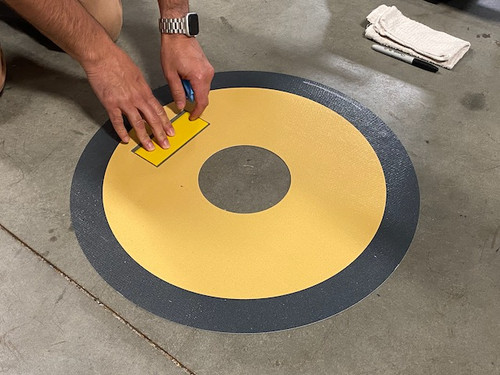Our simple, one-piece sign is easily installed indoors or outdoors within minutes. It will withstand military traffic as well as UV light and hot and cold weather conditions. If you're tired of painting, you have found a winning alternative. The sign also features a small cut-out area for using sections of our Superior Mark® Floor Marking Tape to use for writing in Inspection Dates.