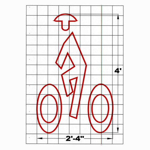 This Bike Lane Marking with Helmet Pavement Marking Symbol measures 4' long by 2' wide and is sold as a pack of 3. Pavement marking symbols keep traffic moving smoothly and safety by clearly communicating traffic flow patterns. These durable pre-cut markings install quickly and easily with no dry time or cure time necessary. Featuring a pressure sensitive adhesive, these rubber based markings will maintain a secure bond in any climate.