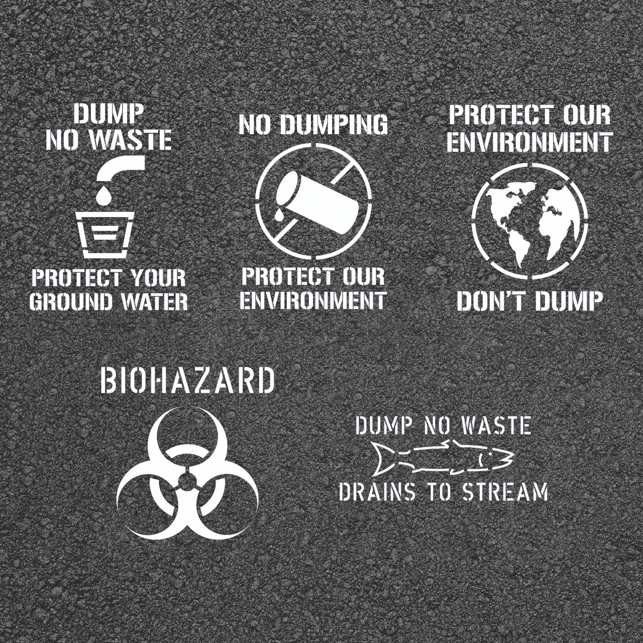 This Environmental Health Stencil Kit comes with five essential stencils that help you make your facility and operations environmentally friendly. Get this 5-pack of environmental stencils to apply visual cues that help maintain environmental safety standards by ensuring that all employees are always aware of responsible practices in your workplace.