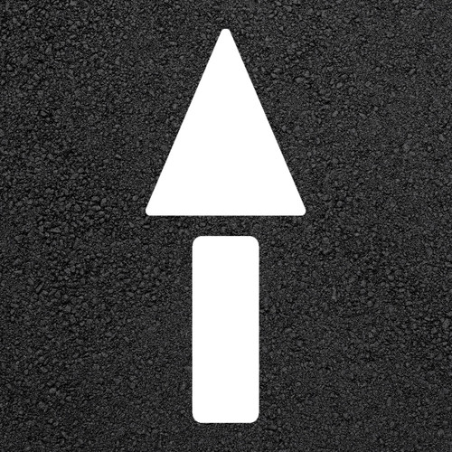 The arrow head itself is 42 inches tall by 36 inches wide. This stencil is constructed of reusable polyethylene plastic in either 1/16-inch or 1/8-inch thickness. Match it with a straight arrow tail for a complete arrow sign that's highly visible on a highway, roadway or in a parking lot.